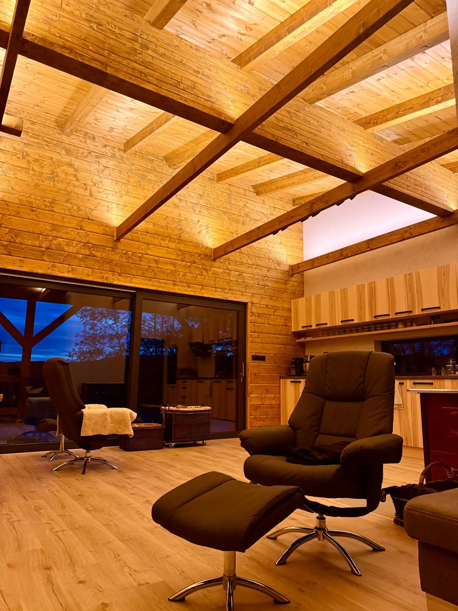 Tento projekt spojuje moderní technologie s přírodním materiálem a nabízí ideální místo k odpočinku v krásné krajině Šumavy.
